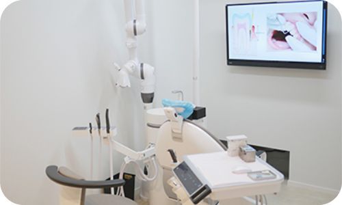 各診療台の前には大きなモニターを設置し、お口の中の写真やレントゲン写真など、画像を見てもらいながら詳しく丁寧に説明することを心がけています。